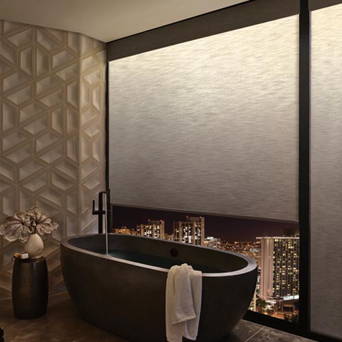Enjoy beautiful lighting, regardless of the time of day or if your shades are closed. One of the new innovations is Aura Illuminated Shades, which offers LED lighting right at the window. This feature allows you to close the roller shades, activate the lighting and adjust the color temperature of the lights. Illuminated Shades can offer cool, energizing daylight, or warm, amber evening light. Lighting adjusts within a range so you can customize the ambiance of your home. Capable of dimming, you can further adjust the interior atmosphere.