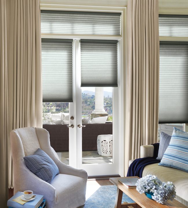 living room french door shades Hunter Douglas Window Treatments for Sliding Glass Doors Chagrin Falls 44022